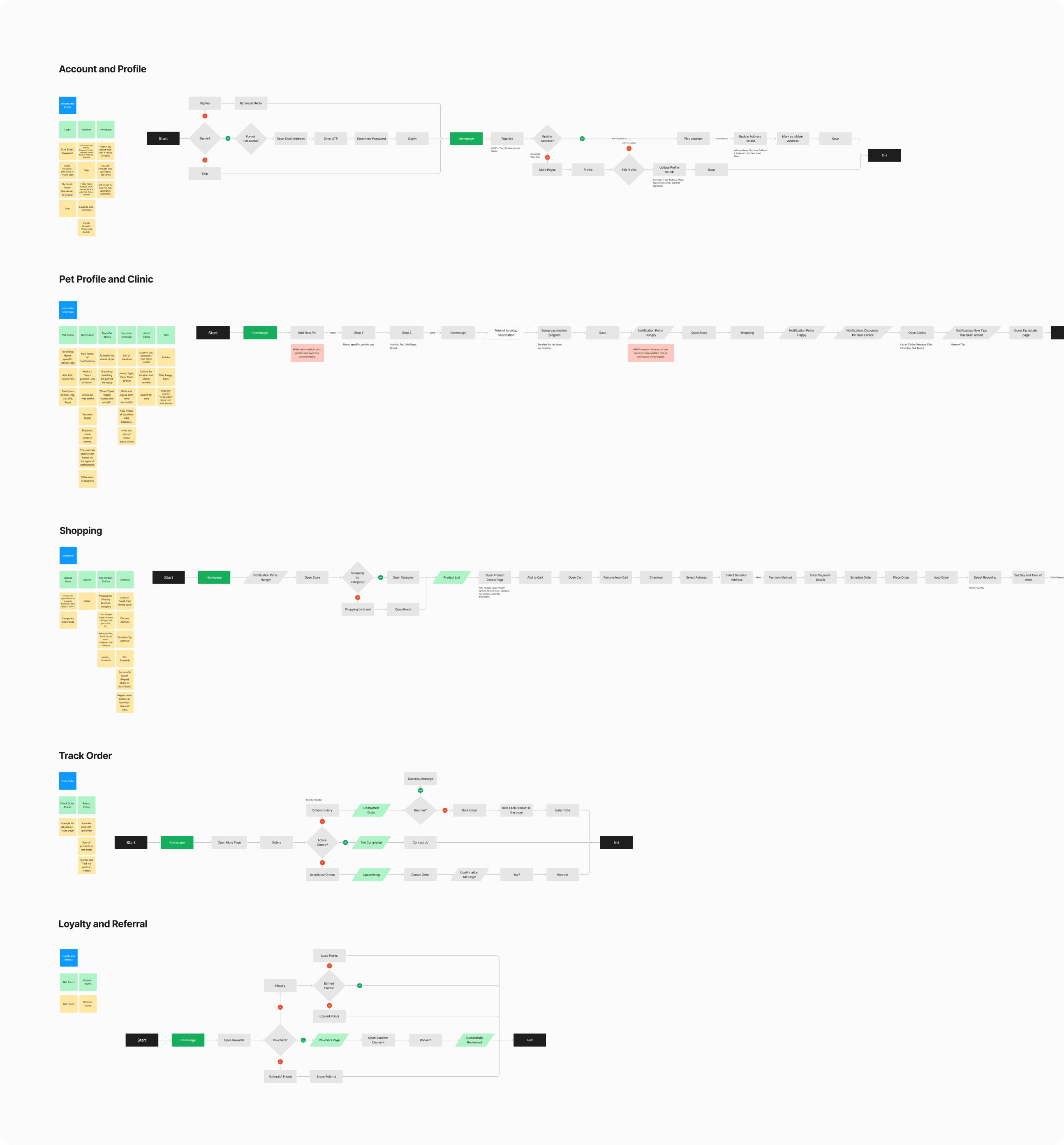 User flows were created based on each activity, step, and the detailed elements of the user story map.