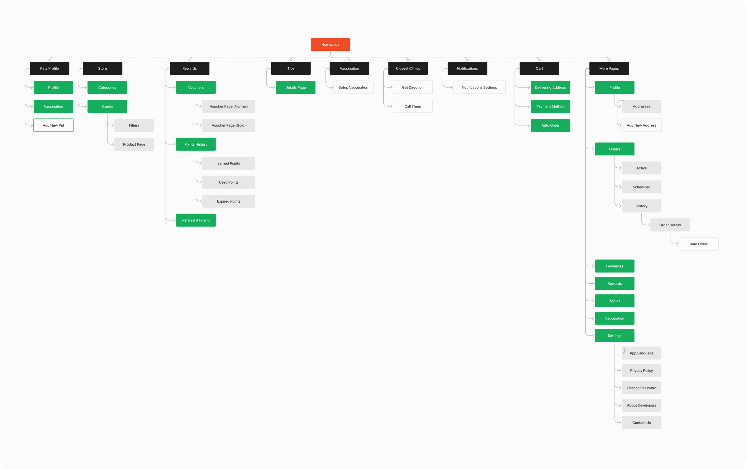 The CTO reviewed and refined the stories to align with the development user stories. After receiving approval, I began designing the app's architecture by creating the sitemap and converting each activity into a user flow.